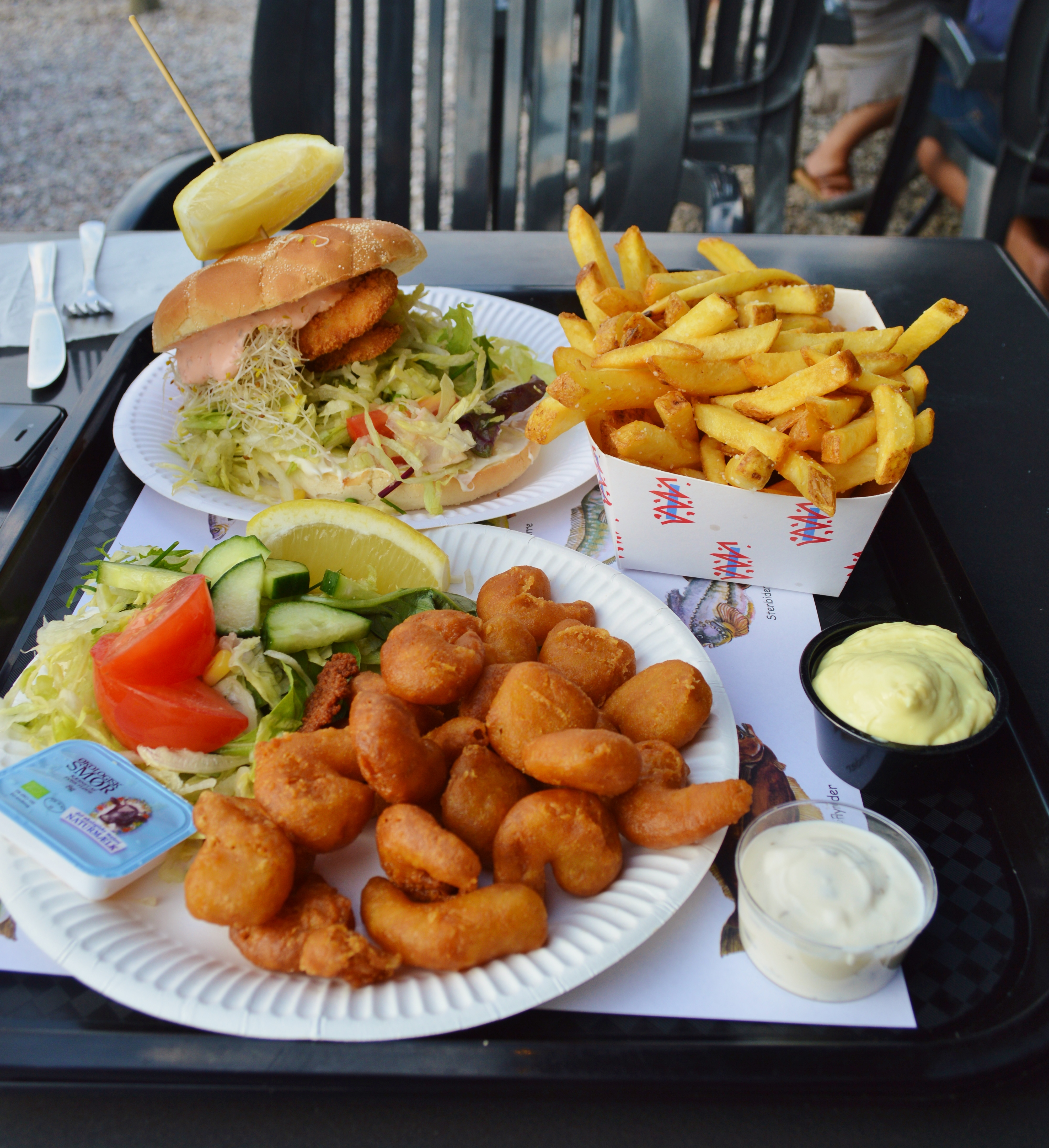 I love the sea. I love being at the seashore, at the beach, or on boats, and that was also one of the major selling points for moving to Denmark. And spending time at the summer house my boyfriend’s parents own in the North of Zealand is always a pure pleasure, especially when the weather is as amazing as it was these last couple of days when we were up here. Thursday, we went to have dinner at the popular restaurant at the marina. It’s attached to the local fish store, and even though the ambiance leaves something to be desired (we’re talking plastic chairs and paper plates here), the quality of the freshly caught fish and seafood is just amazing. Add to that the unbeatable location right at the harborfront and you’ve got yourself a great dinner!